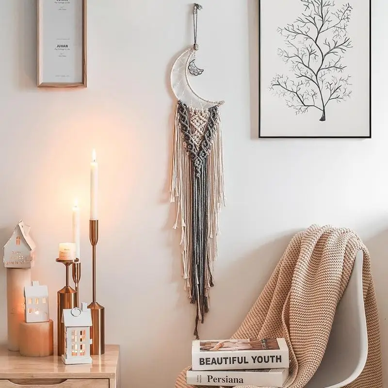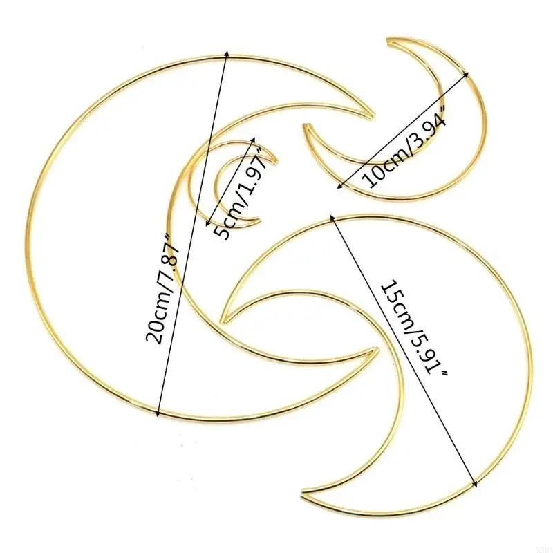 50-200mm Moon Shaped Dream Catcher Frame Circle Ring Metal Macrame Moon