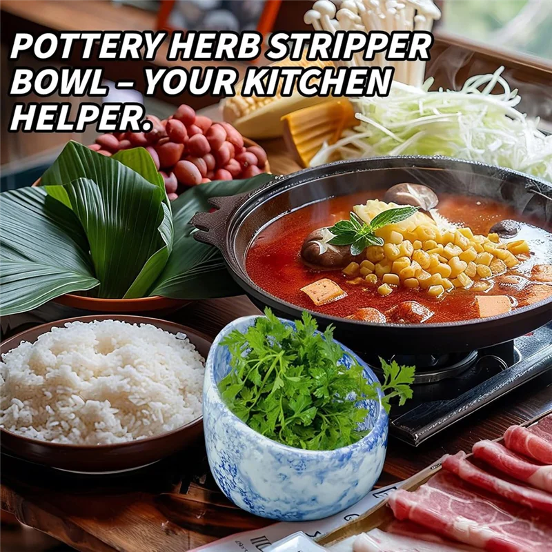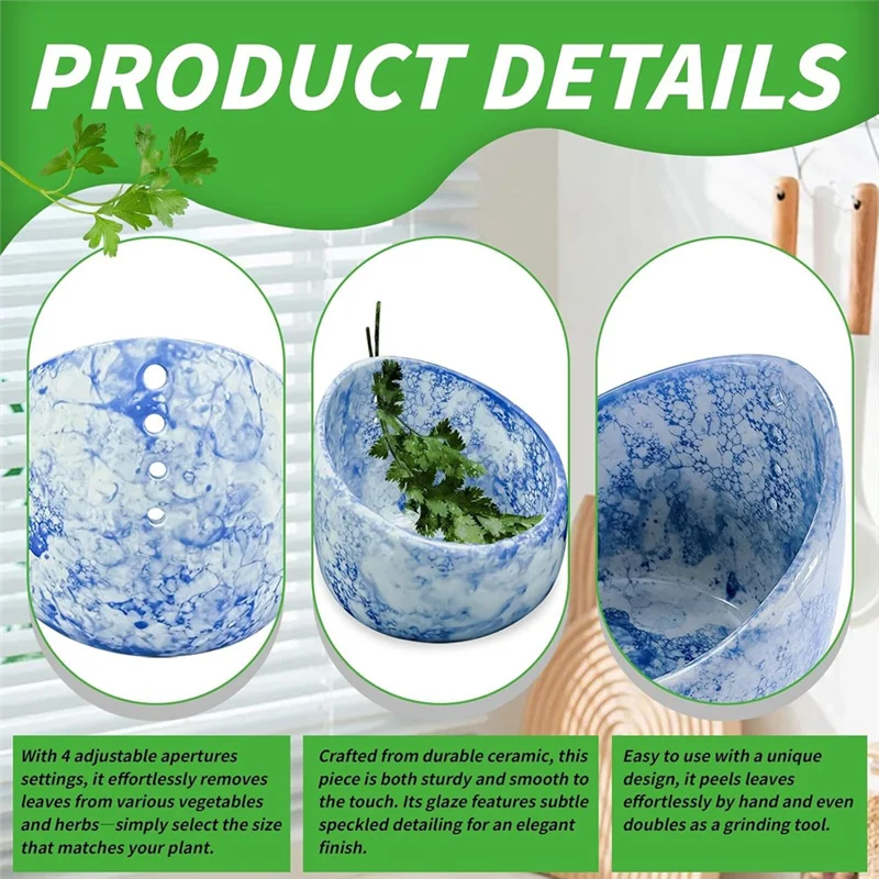 A69eherb Stripper For Kitchen, Pottery Herb Stripper Bowl, Leaf Removal Tool For
