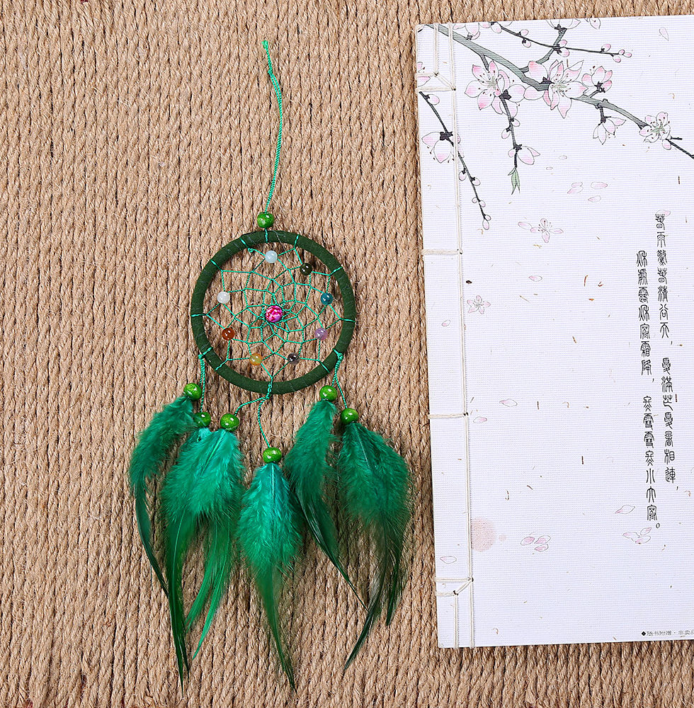 Handmade Dream Catcher Hanging With Rattan Bead Feathers Wall Car Decor Ornament