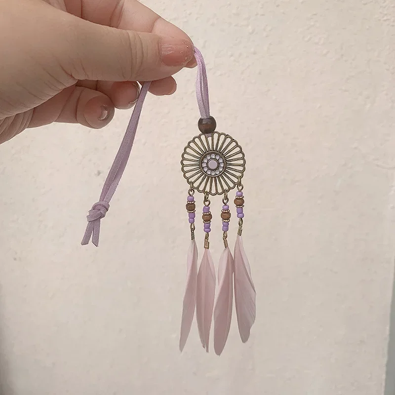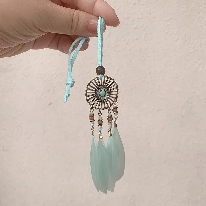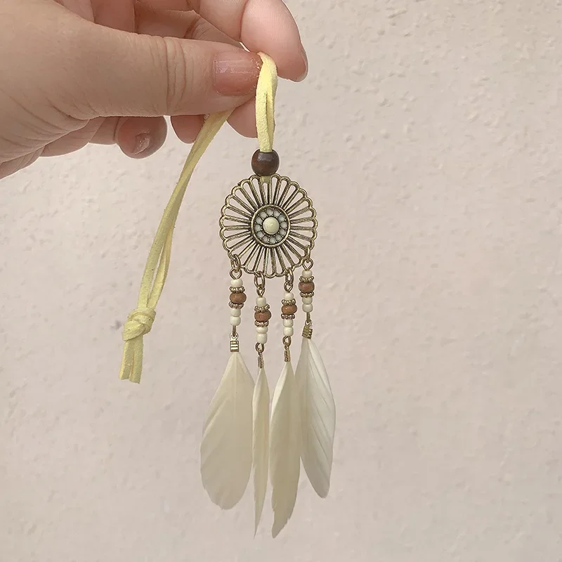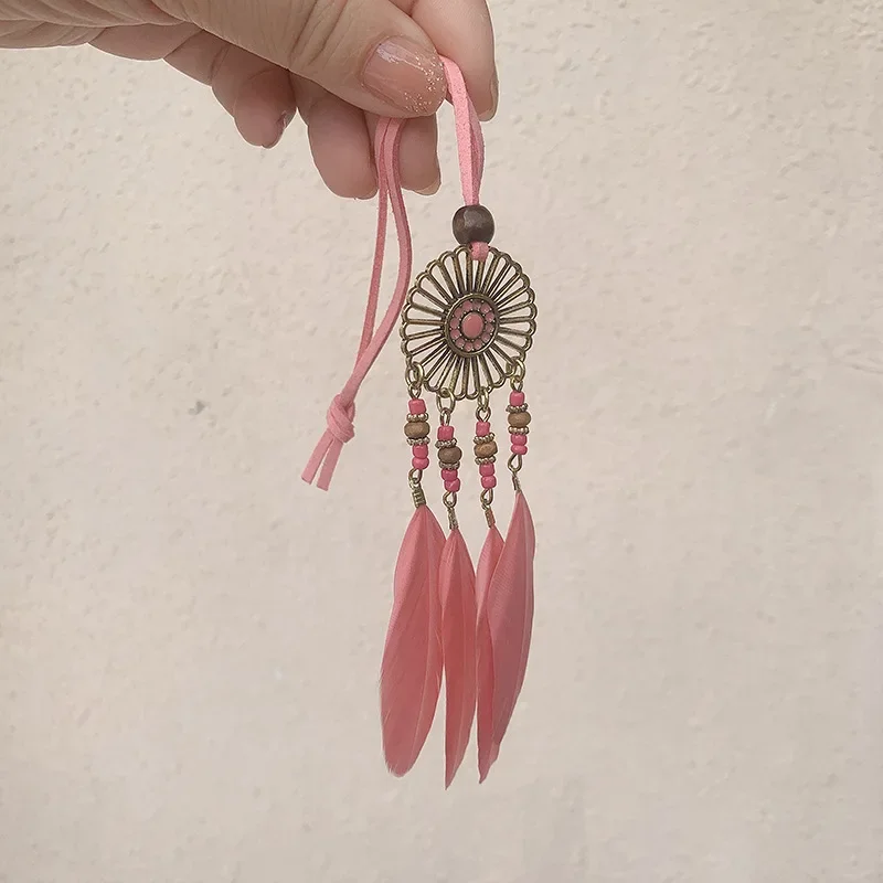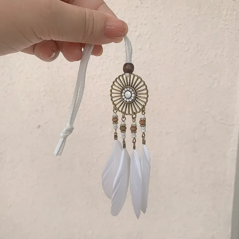 Mini Dream Catcher Pure Handmade Car Pendant Feather Hanging Ornaments Wall Hanging Home Interior Decor Wind Chimes Girls Gifts