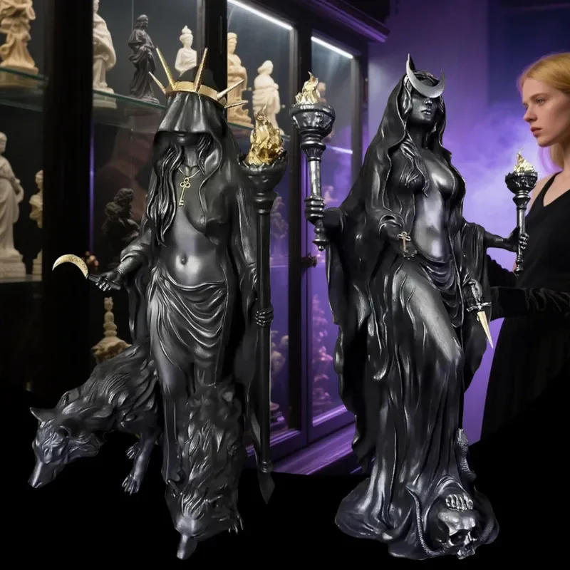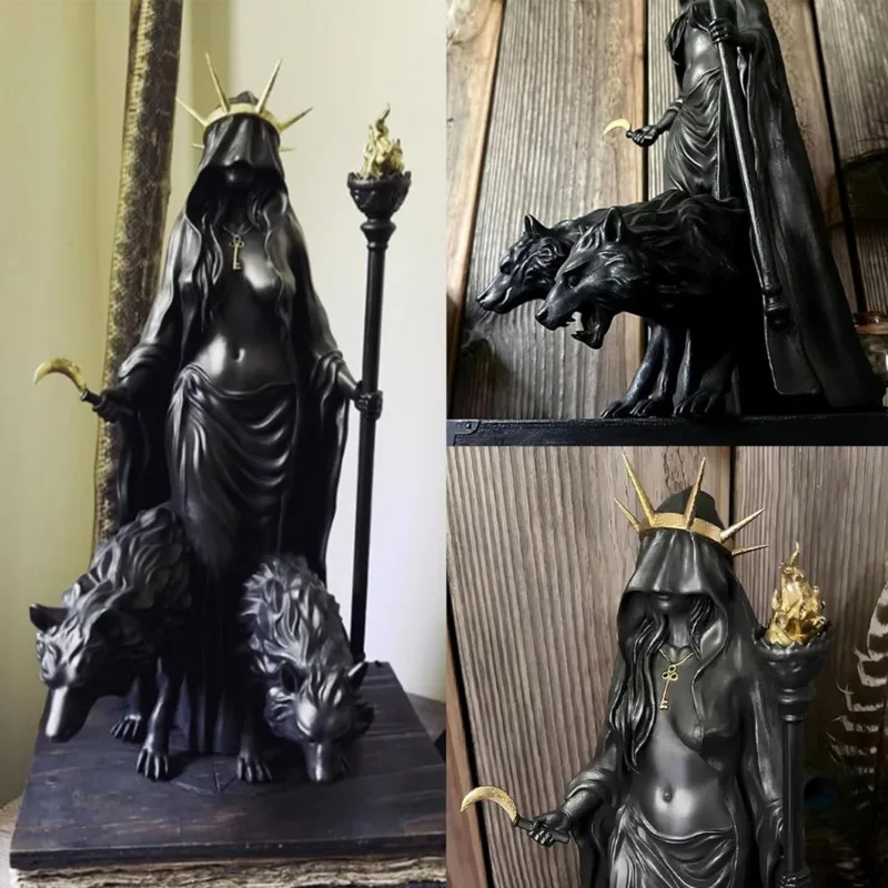 The Witch of The Night Hecate Greek Goddess with Her Hounds of Magic Sculpture U