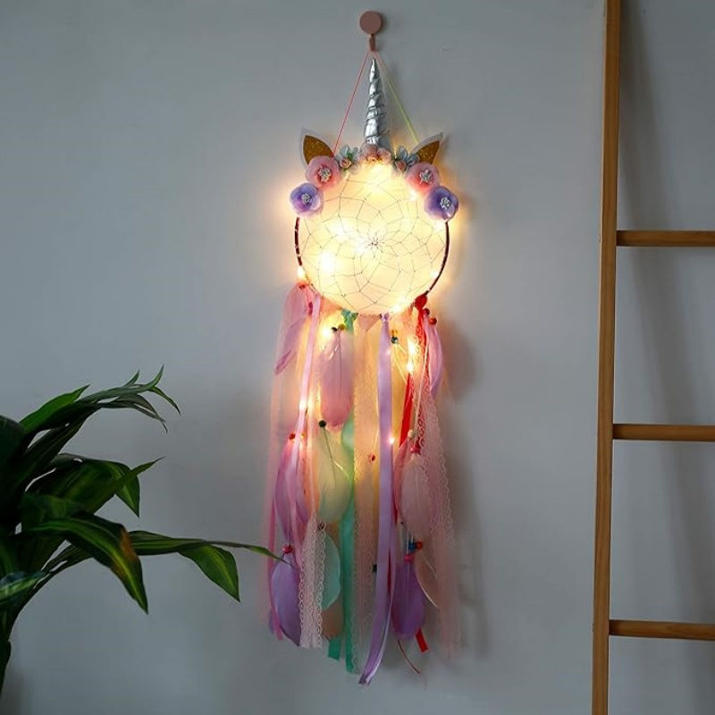 Unicorn Dream Catchers for Kids - Purple Pink Dreamcatcher With Colorful Lights,